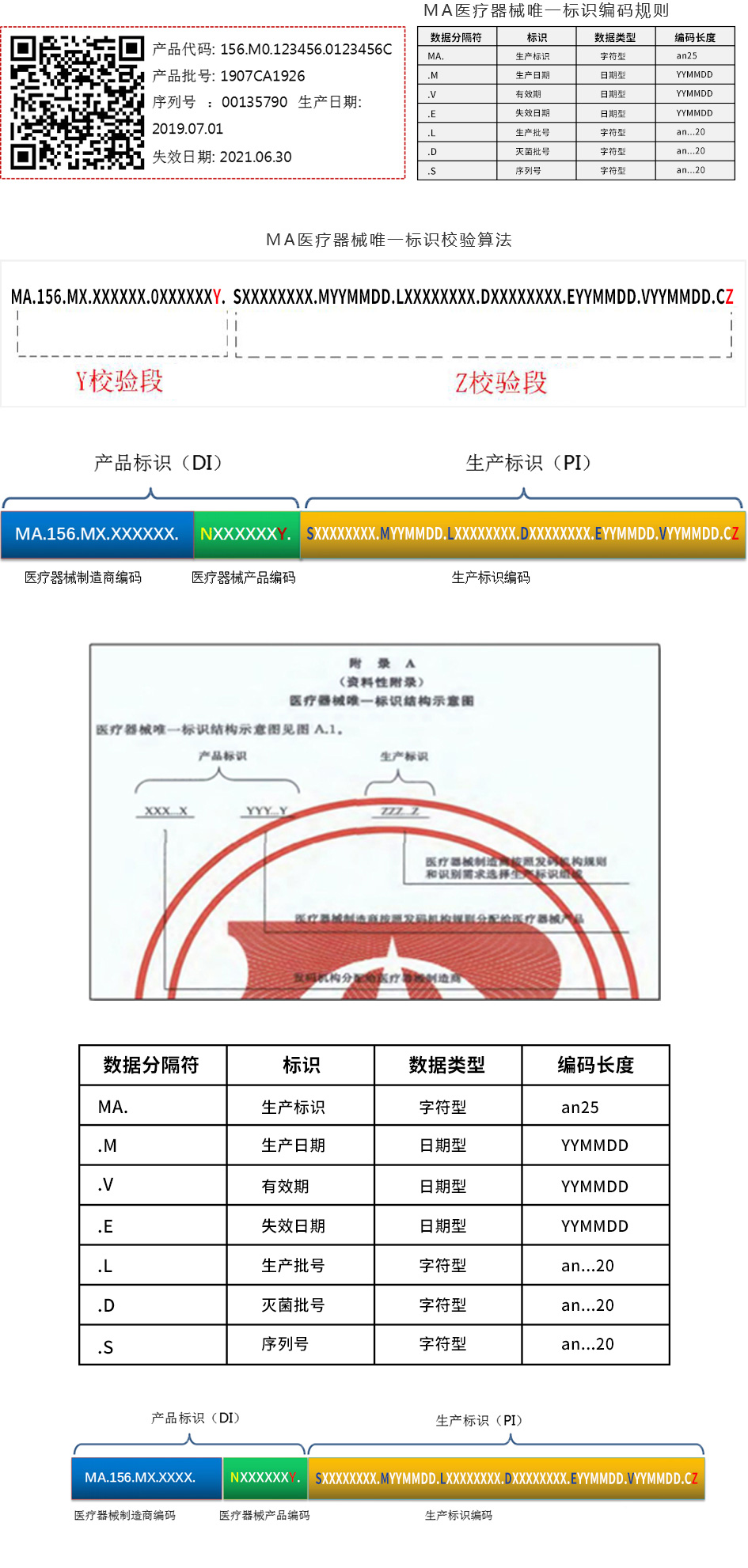 由分隔符“MD”以及医疗器械的生产日期数据字段组成。生产日期数据字段为6位固定的数字,由年(取后2位)、月(2位)和日(2位)按顺序组成。